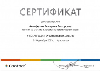 - Спциалист по микроскопу, эндодонтии, эстетической стоматологии.