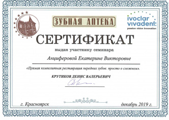 "Прямая композитная реставрация передних зубов: просто о сложном." Крутиков Д.В. (2019 г.).