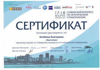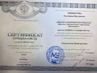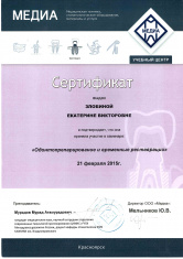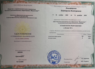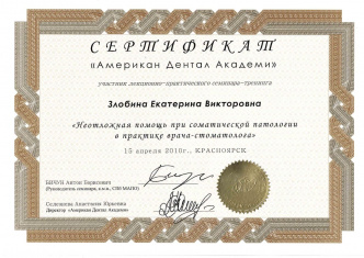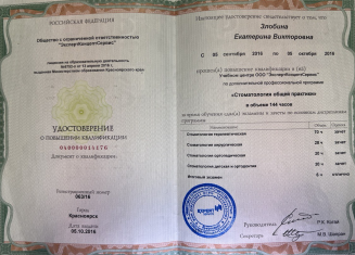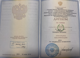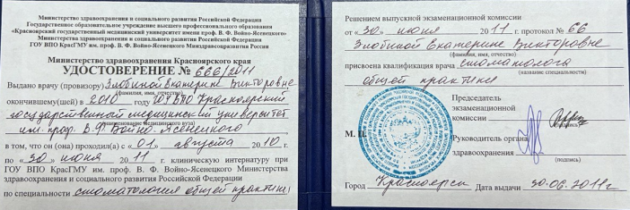 Красноярский государственный медицинский университет (стоматология) (2010 г.). Красноярский государственный медицинский университет (стоматология общей практики) (2011 г.).